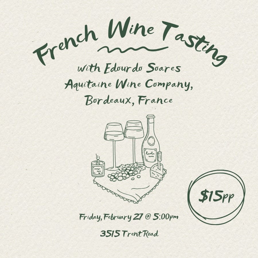 Join us at Small Batch Specialty Gifts as we welcome Eduardo Soares from Aquitaine Wines in Boardeaux, France. We'll taste and savor 5 French wines that are available for purchase!