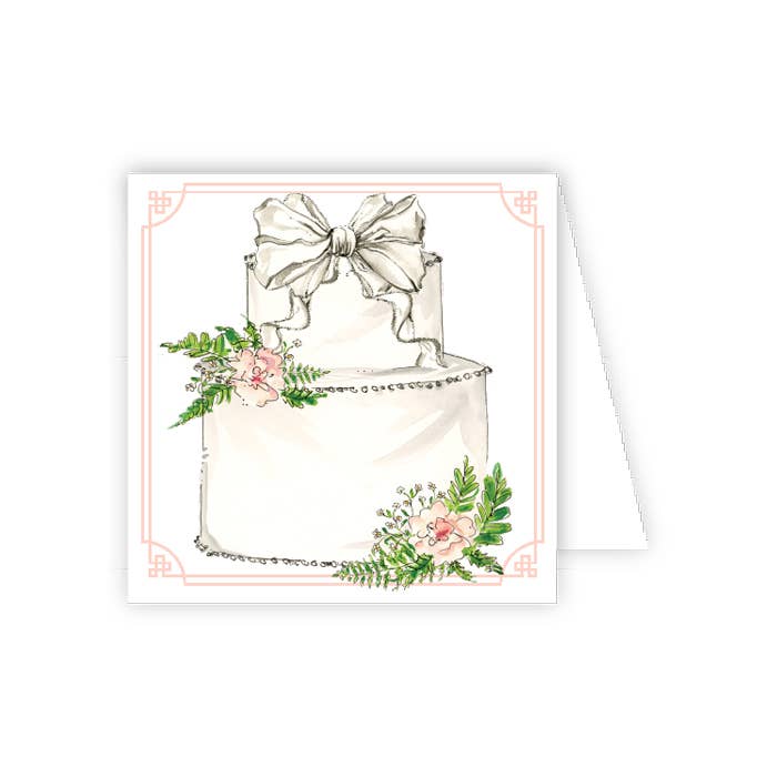 Wedding Cake with Bow and Flowers Enclosure Card