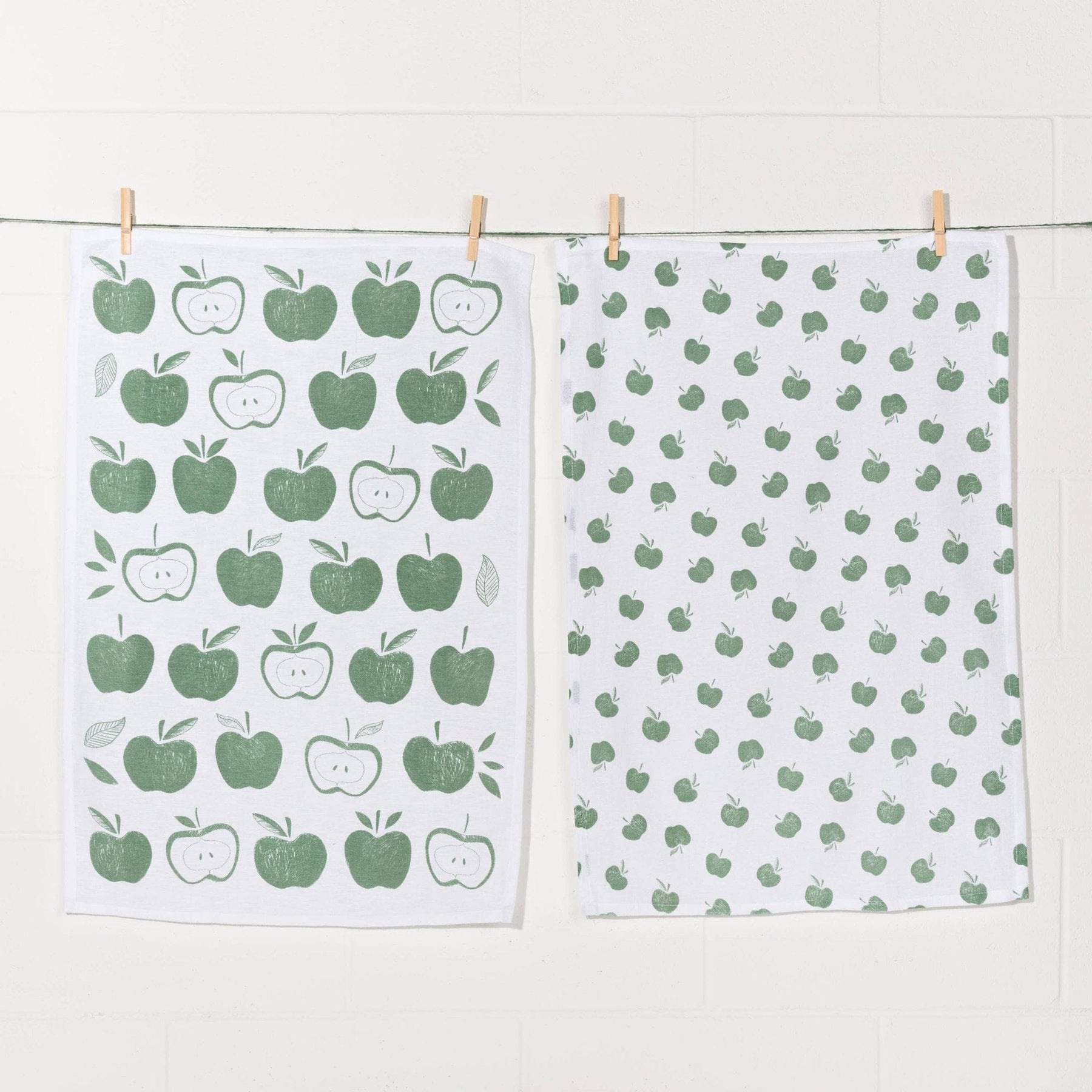 Introducing the Apples Print Elm Green Floursack Dishtowels Set of 2, a delightful addition to your kitchen that embodies the charm of an orchard. Crafted from 100% cotton, these towels are not only functional but also a unique decorative element that brightens your space.