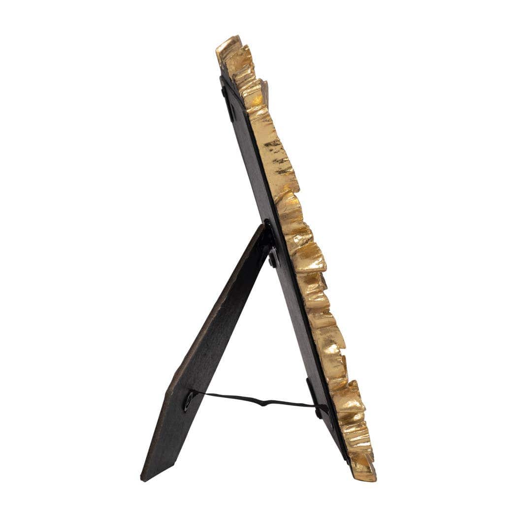 Hand-cast from durable polyresin, this decorative picture frame features intricate detailing and a crystal-clear glass front to protect and showcase your favorite 4" x 6" photo. The easel back allows for both vertical and horizontal display, making it easy to style on office desks, bedside tables, console tables, or living room shelves.
