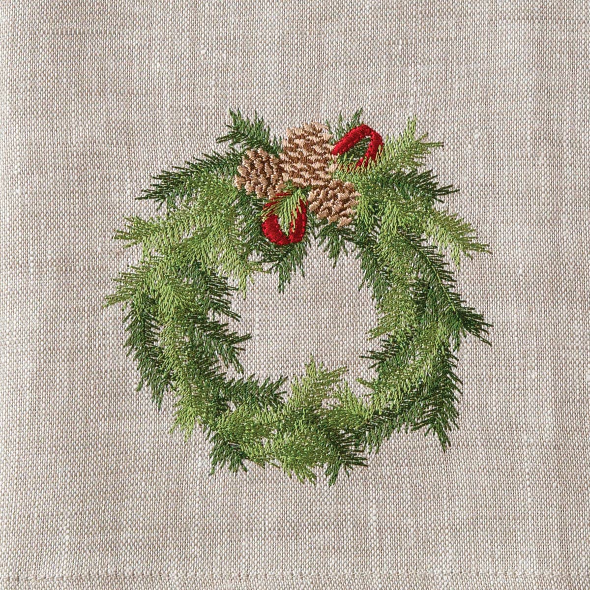 Introducing the Juniper Wreath Linen Towel, a stunning addition to your holiday decor. This exquisite towel is crafted from 100% European linen, ensuring both durability and elegance. Its unique embroidery, designed by the talented Sonia Showalter, adds a touch of artistry that sets it apart from ordinary kitchen textiles.