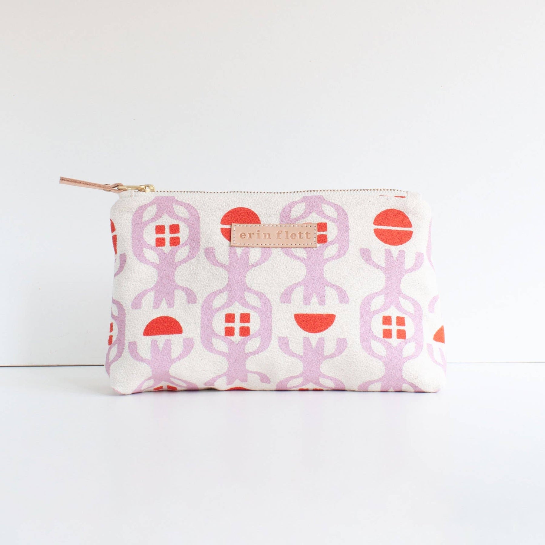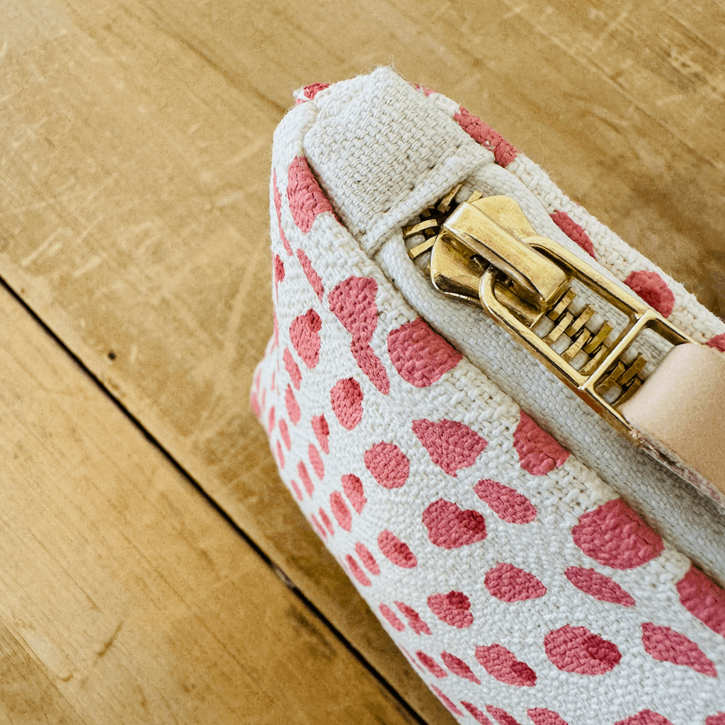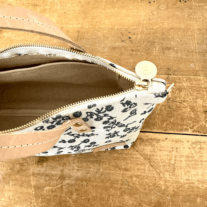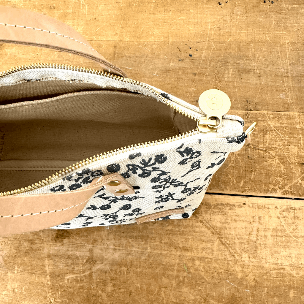 Discover the Erin Flett Cotton Pouches, where artistry meets functionality. Each pouch is crafted from unique cotton barkcloth, adorned with elegant leather details, making it a standout accessory for any occasion.