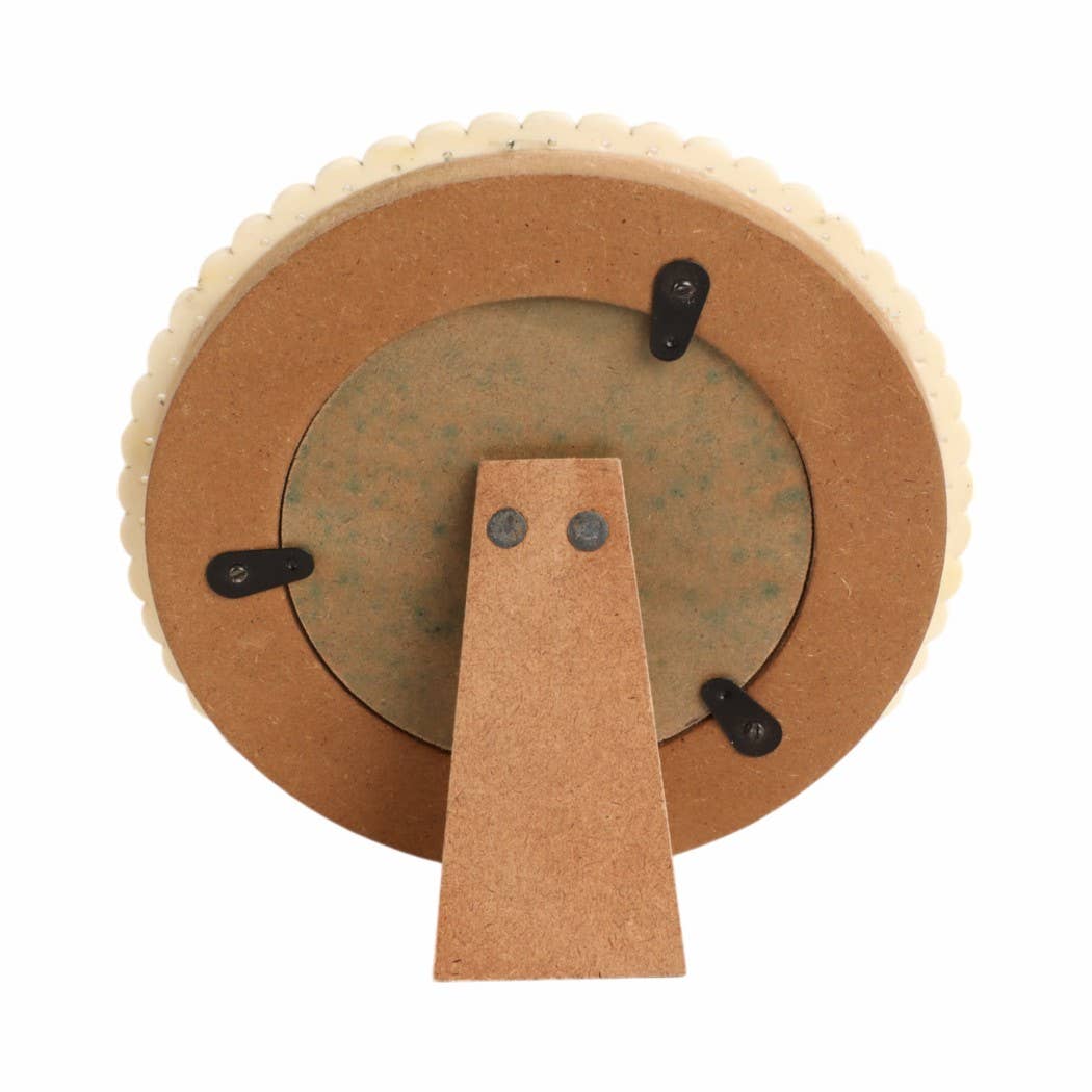 Celebrate your favorite moments with this round sunburst picture frame, featuring elegant scalloped detailing in a soft ivory tan finish. The sculpted sunburst rim adds modern glam texture while the neutral tone blends effortlessly with contemporary, glam, and minimalist home décor.