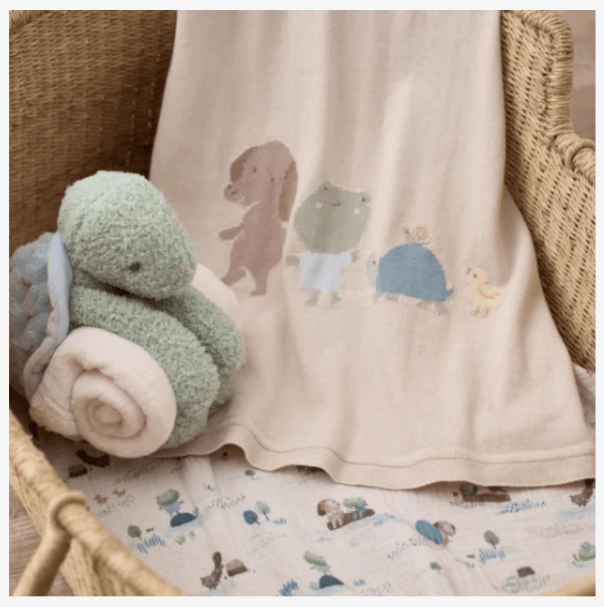 Introducing the Pond Friends Knit Blanket, a delightful addition to your baby's essentials. Crafted from 100% soft cotton, this mid-weight blanket is not only cozy but also incredibly durable, making it perfect for stroller rides, naps, and playtime.