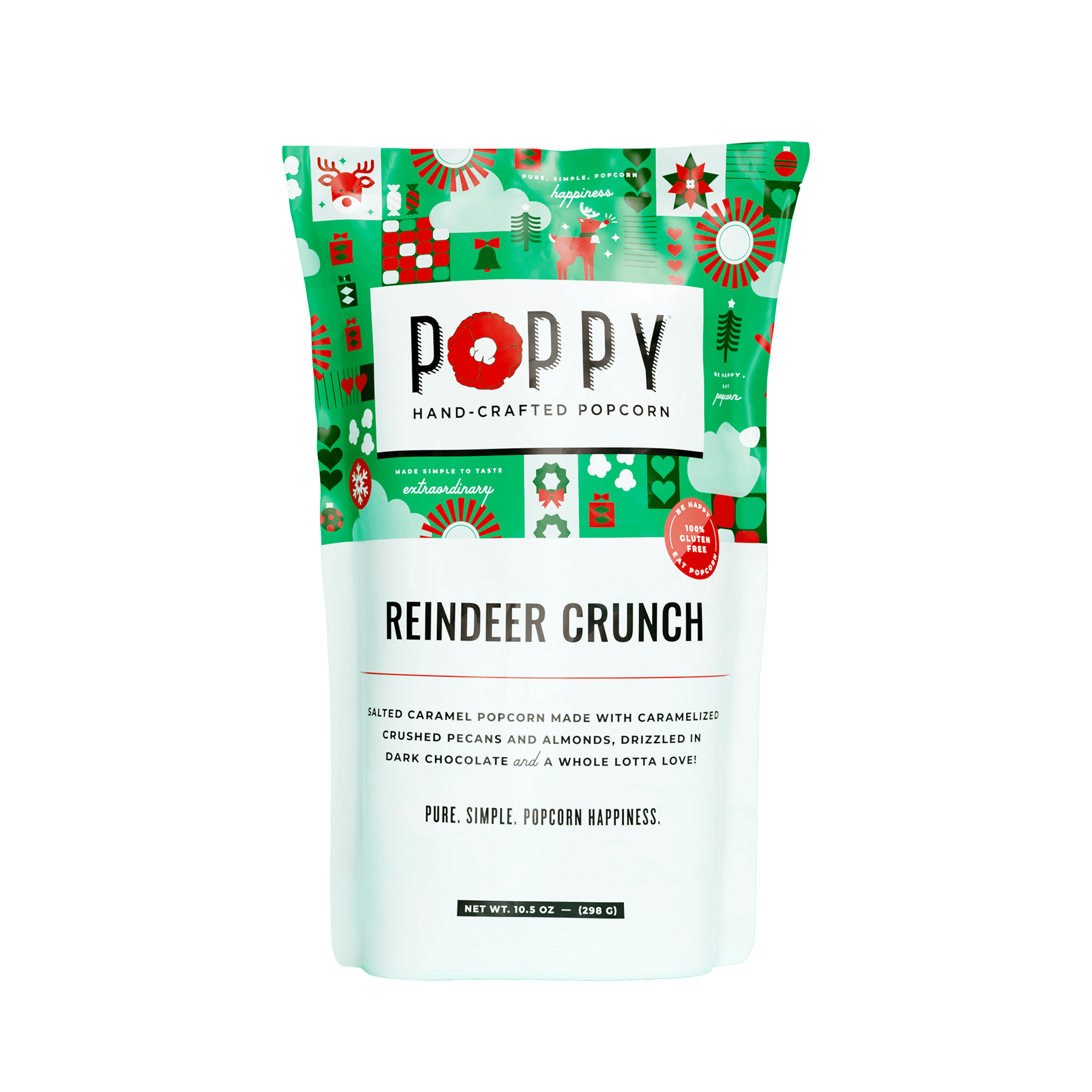 Experience the magic of the holidays with Reindeer Crunch Popcorn, a delightful treat that stands out from the crowd. This unique flavor combines Poppy's renowned Salted Caramel popcorn with caramelized crushed pecans and almonds, creating a symphony of taste and texture.
