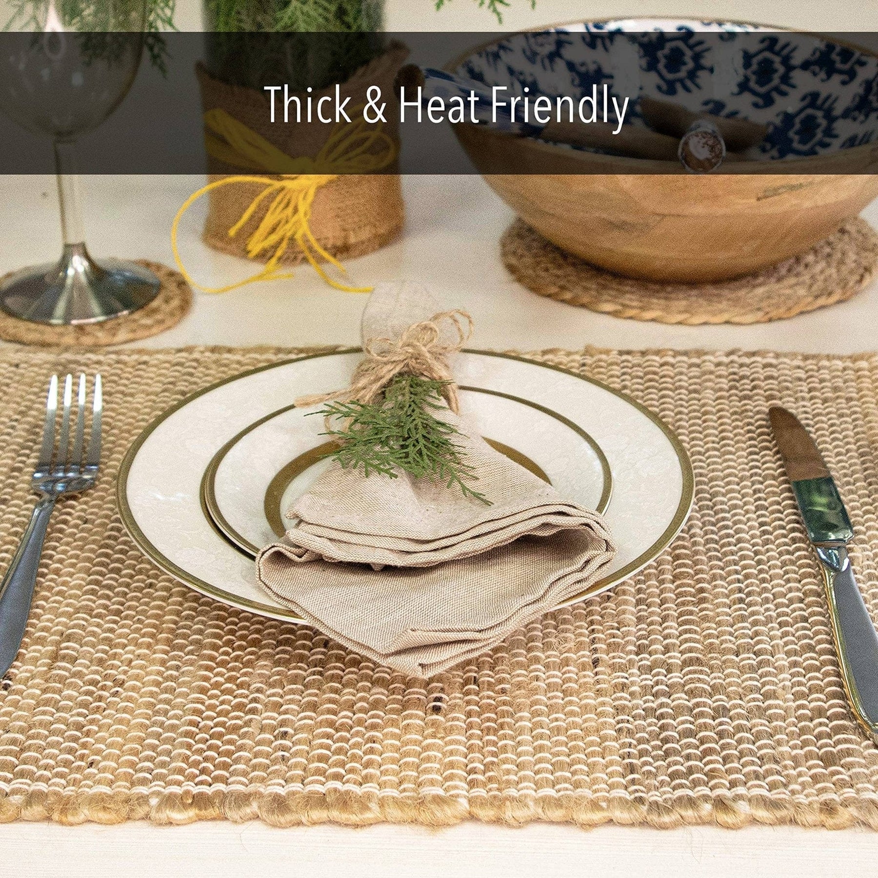 Introducing our Set of 4 Jute & Hemp Placemats, measuring 13x19 inches, designed to elevate your dining experience. Crafted from sustainable materials, these placemats are not only durable but also eco-friendly, making them a unique addition to your table setting.