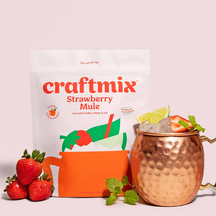 Introducing the Strawberry Mule Cocktail Mixer, a unique blend of strawberry, ginger, and lime that elevates your cocktail experience. Unlike typical mixers, Craftmix is designed for those on the go, making it perfect for any occasion—from camping trips to beach parties.