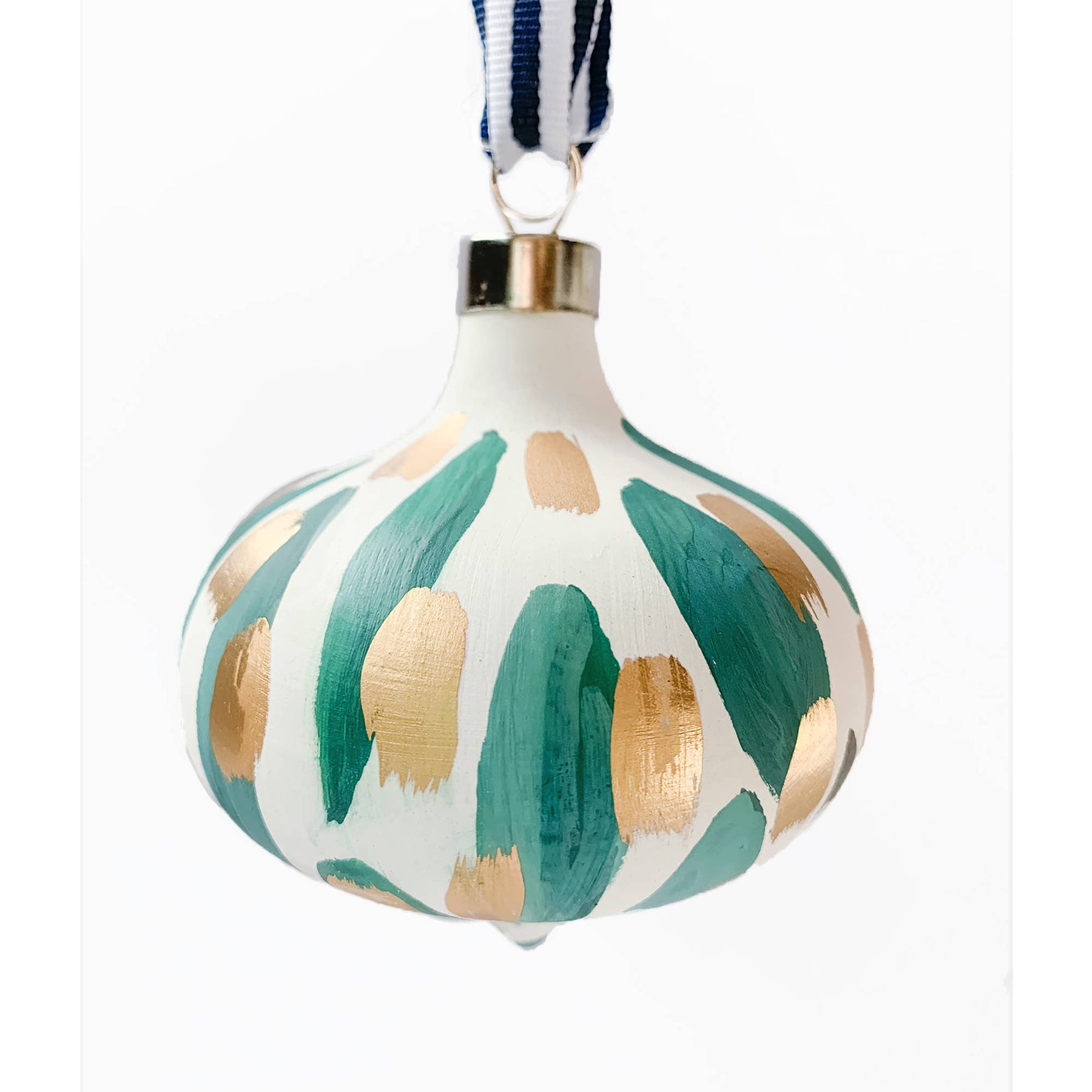 Crafted on raw bisque ceramic, this ornament features exquisite details, including liquid gold leaf accents. Measuring 3 inches, it comes beautifully packaged in a gift box with tissue, making it an ideal present for loved ones or a cherished addition to your holiday decor.