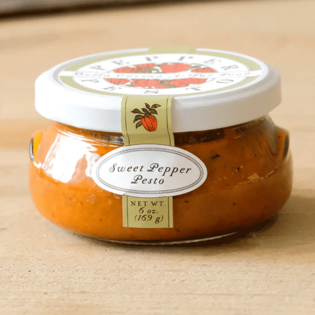 Discover the unique flavor of our Sweet Pepper Pesto, crafted from fire-roasted red bell peppers. This artisanal blend creates a sweet and savory sauce that elevates any dish.