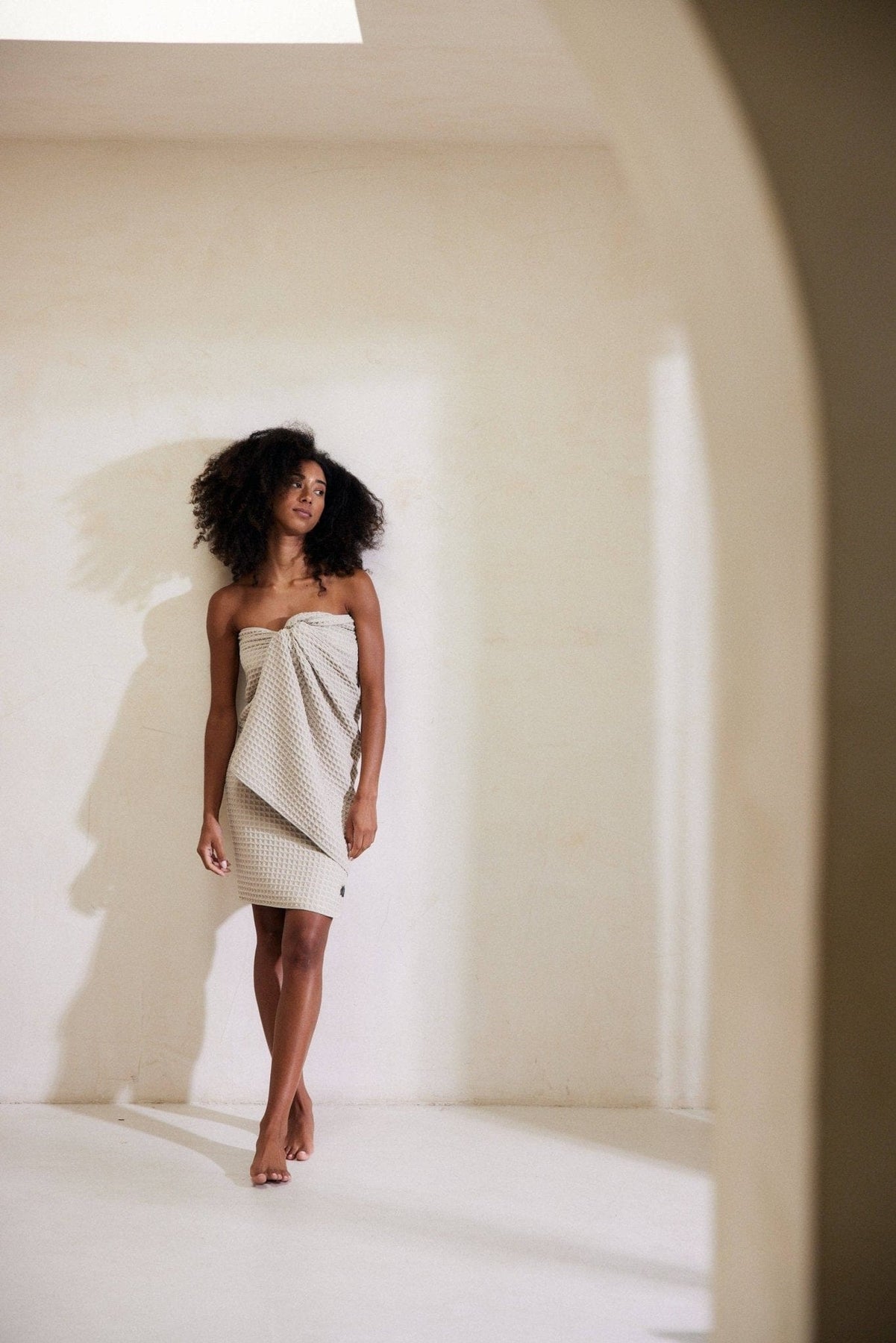 Experience the luxurious comfort of the Taupe Waffle Bath Towel, a unique blend of style and sustainability. Generously sized at 31” x 57”, this towel envelops you in softness while ensuring maximum absorbency.