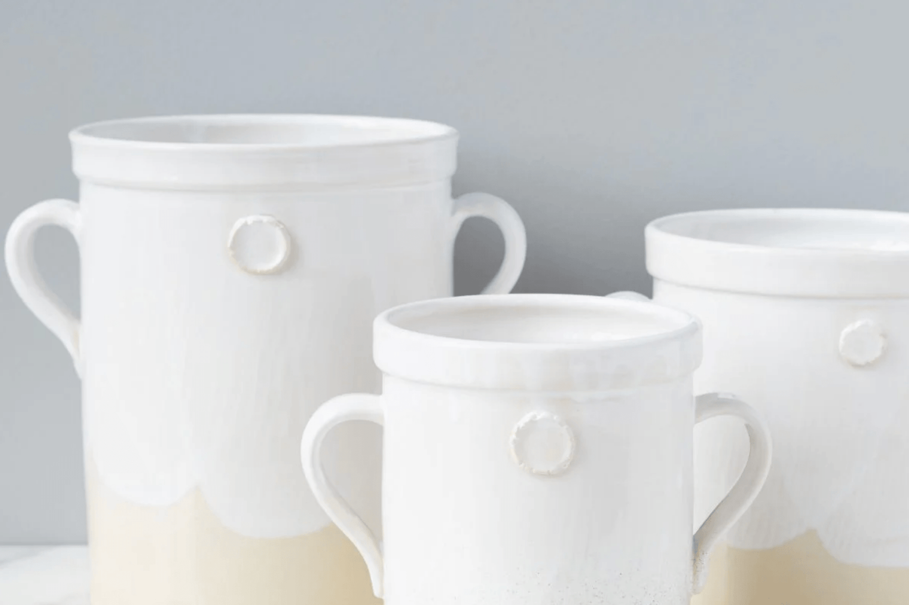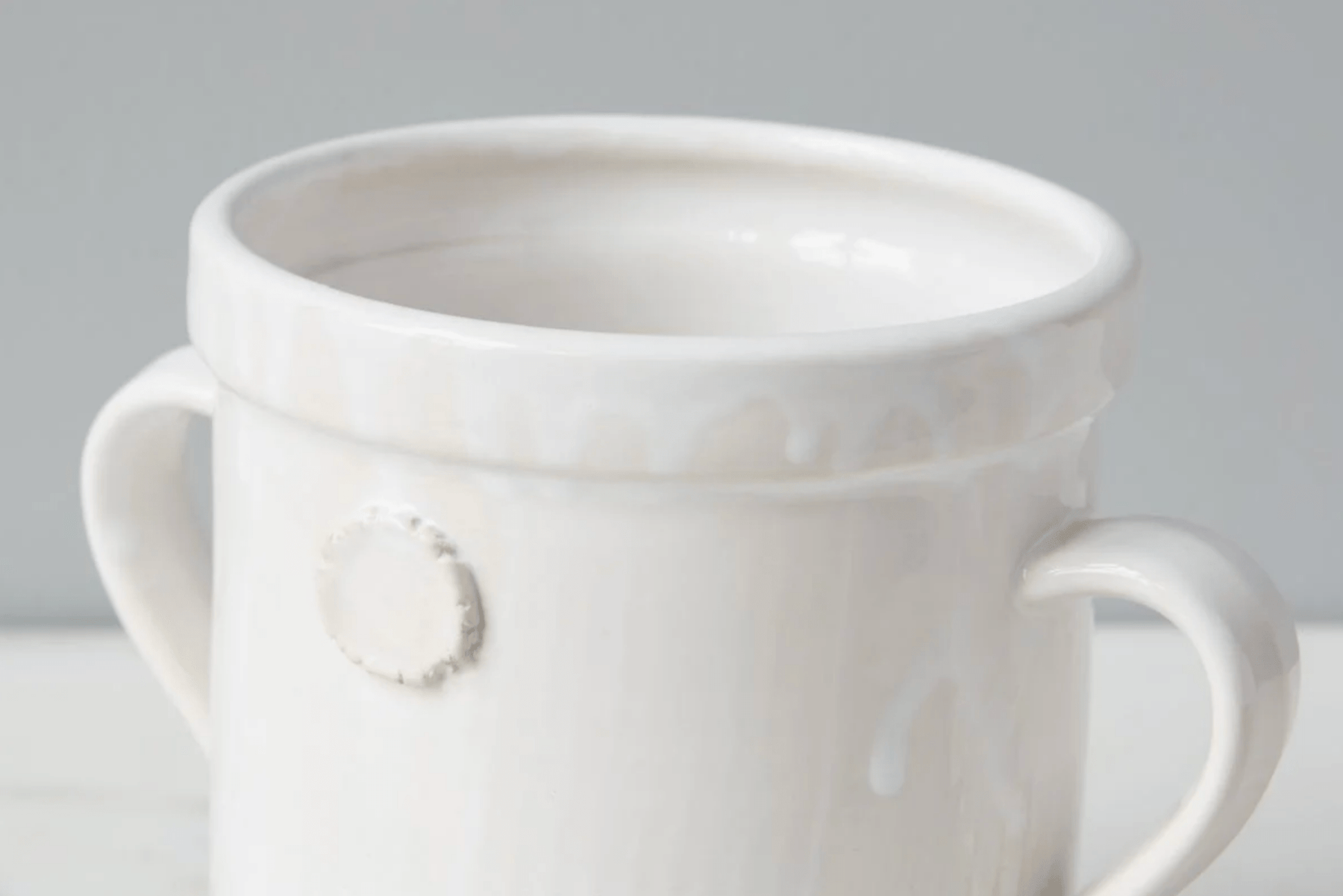 The White Handthrown Crock is a stunning example of artisanal craftsmanship, meticulously handcrafted from white European clay. Each piece is created on an original potter’s wheel by skilled European artisans, ensuring that no two crocks are alike. This uniqueness is further enhanced by the lush glaze that adorns the top, while the raw clay bottom remains untouched, showcasing the beauty of traditional pottery.